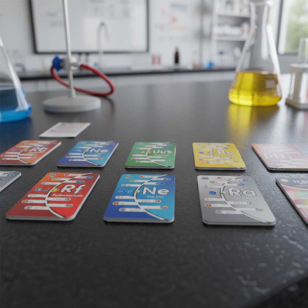 Una baraja pensada para aprender las propiedades periódicas de los elementos químicos de forma práctica y accesible. A través de diferentes dinámicas, los jugadores reconocen tendencias de la tabla periódica, identifican tipos de enlaces y comprenden cómo se forman los compuestos inorgánicos. Ideal para reforzar contenidos de química, ejercitar la memoria y comprender conceptos clave jugando.